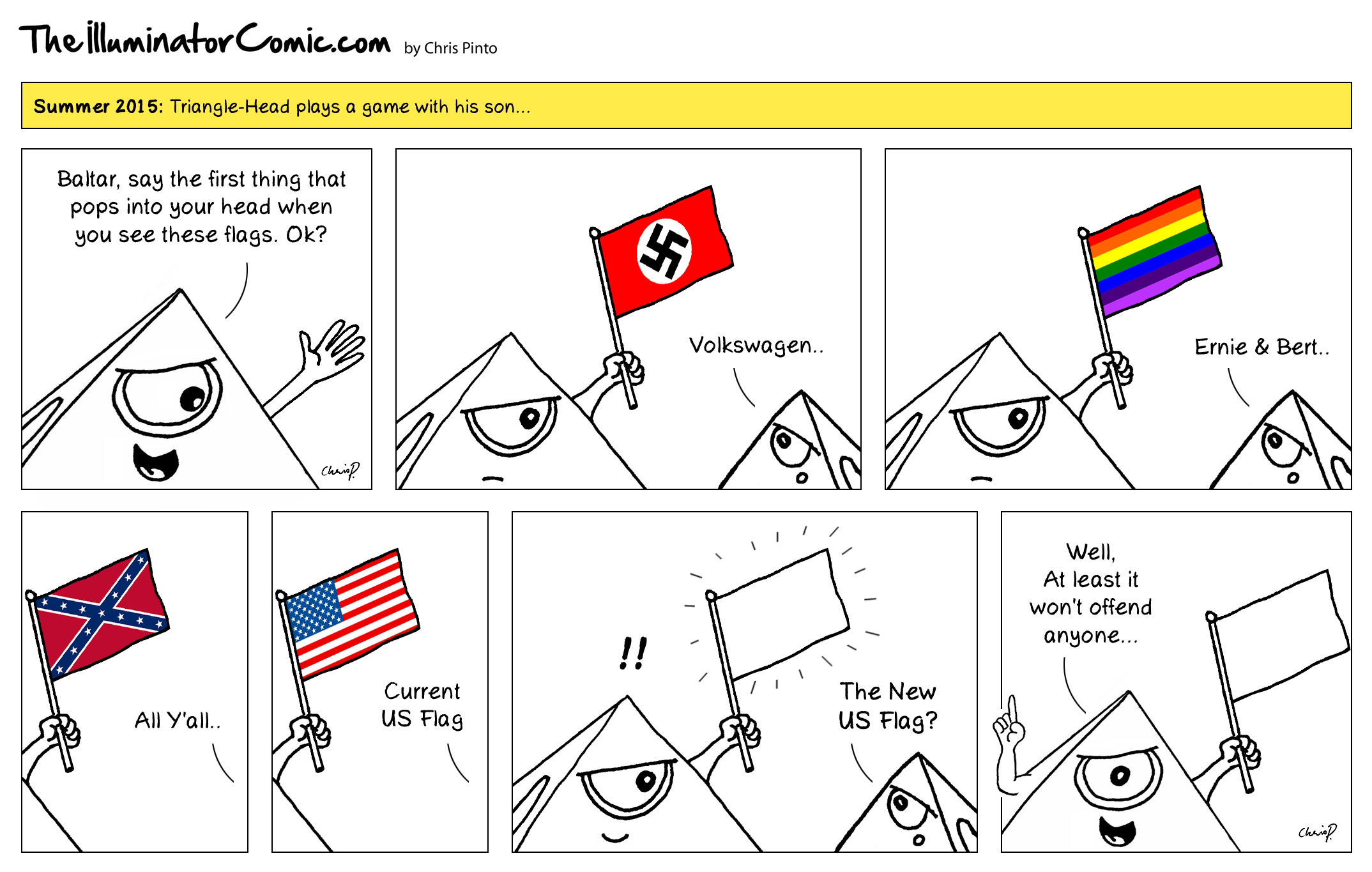 Illuminati, The Illuminator Comic, Triangle-head, Conspiracy theory, New World Order, NWO, Gay, Lesbian, LGBTQ, Baltar, Racist, Racism, Black, Bown, Asian, White, immigrant, Pride, msm, media lies, fake news, confederate, flag