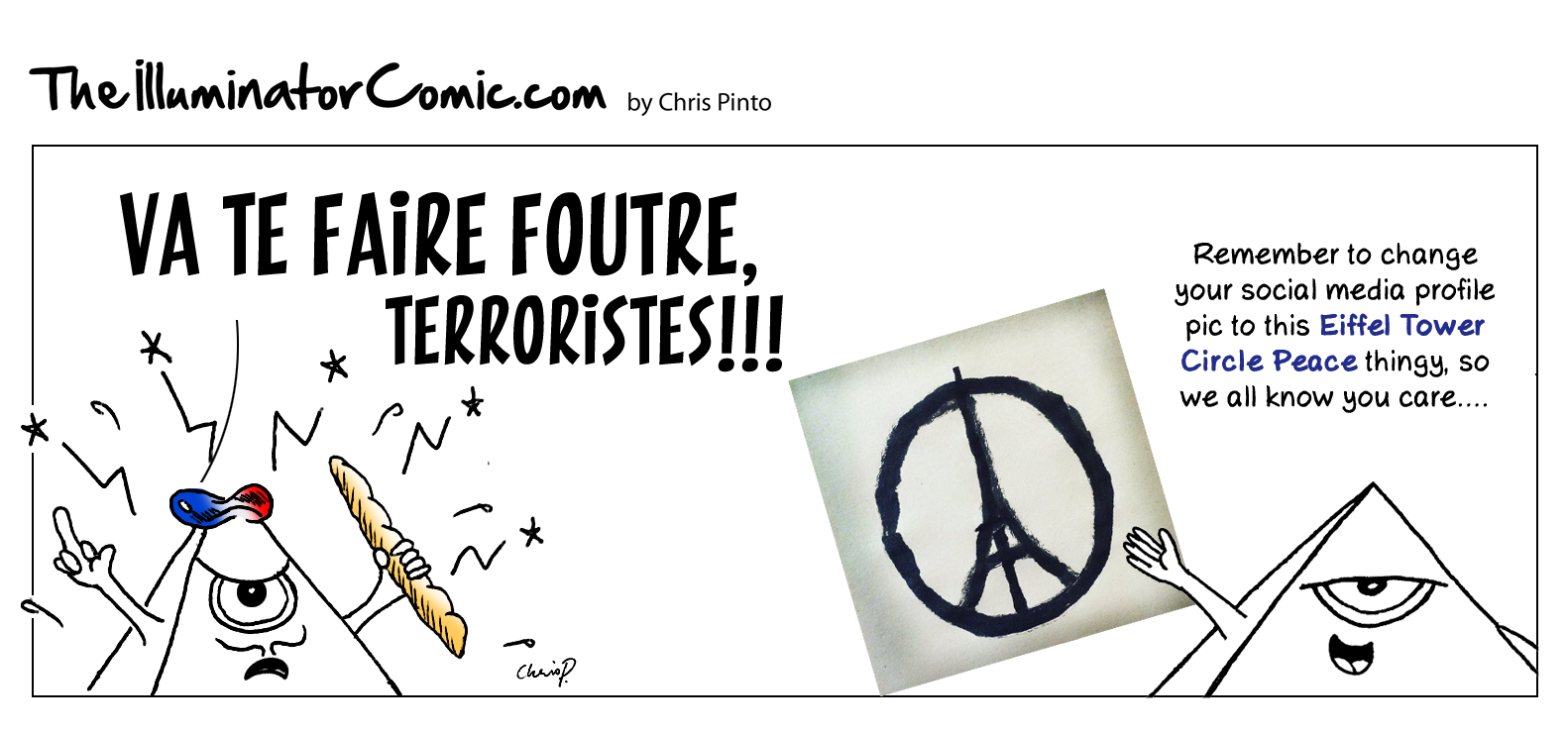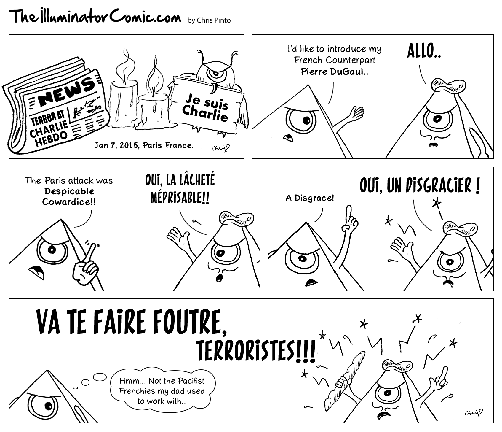 Illuminati, The Illuminator Comic, Triangle-head, Conspiracy theory, New World Order, NWO, Paris, Terror, Terrorist, Terrorism, ISIS, Islamophobia, Islam, Pierre DuGaul