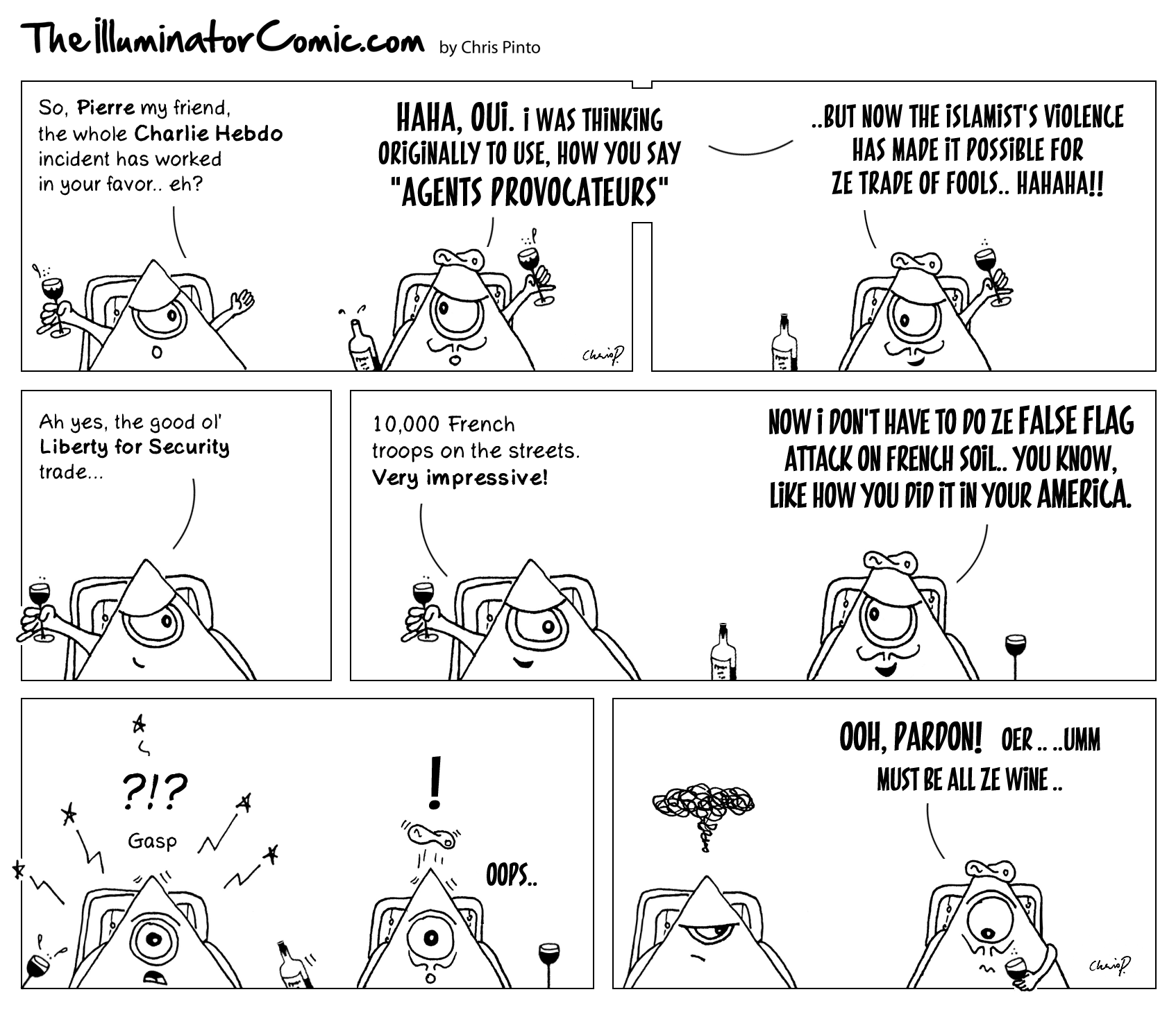 Illuminati, The Illuminator Comic, Triangle-head, Conspiracy theory, New World Order, NWO, Terror, Terrorist, Terrorism, ISIS, Islamophobia, Islam, France, Charlie Hebdo, jesuischarlie, msm, media lies, fake news, pierre dugaul