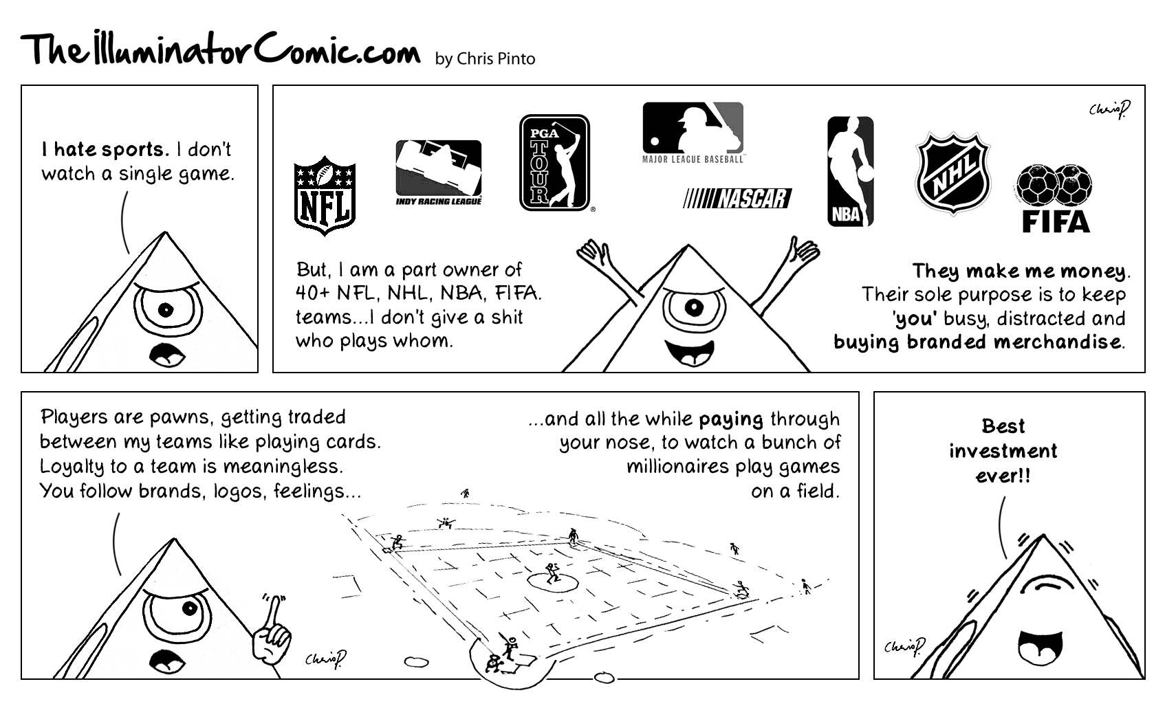 Illuminati, The Illuminator Comic, Triangle-head, Conspiracy theory, New World Order, NWO, Sports, NFL, NBA, FIFA, NASCAR, NHL, msm, media lies, fake news