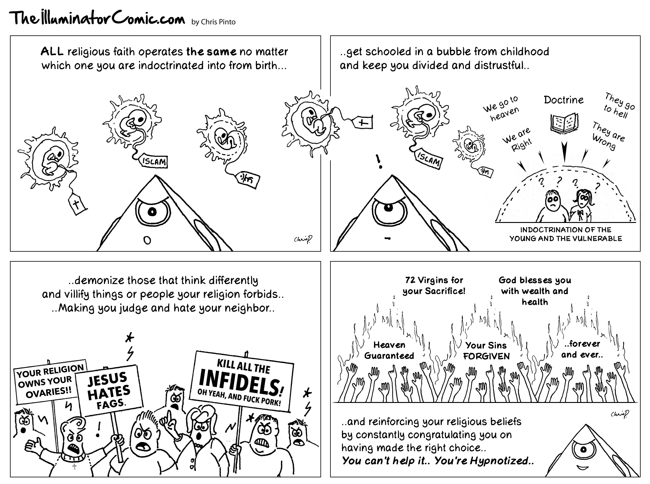 Illuminati, The Illuminator Comic, Triangle-head, Conspiracy theory, New World Order, NWO, Atheism, Atheist, God, Terror, Terrorist, Terrorism, ISIS, Islamophobia, Islam, Muslim, msm, media lies, fake news