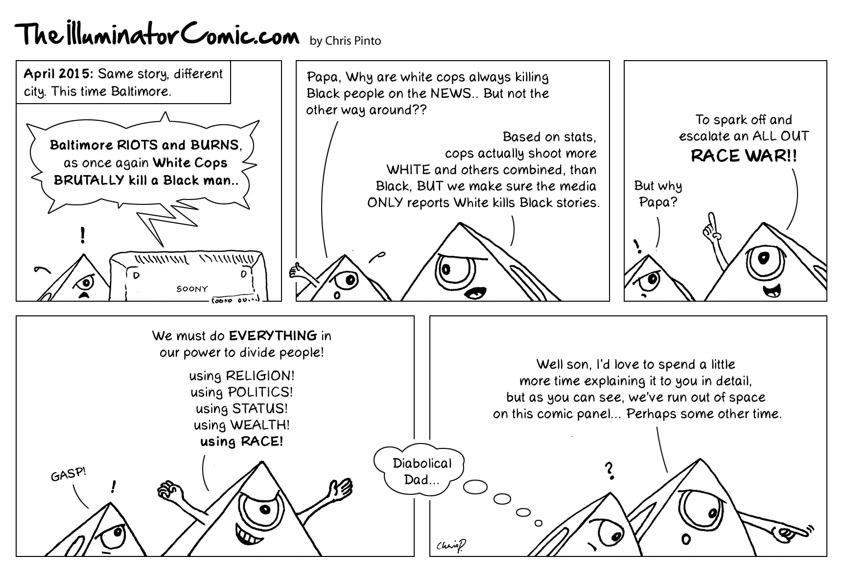 Illuminati, The Illuminator Comic, Triangle-head, Conspiracy theory, New World Order, NWO, baltimore, Baltar, Terror, Terrorist, Terrorism, ISIS, Islamophobia, Islam, Racist, Racism, Black, Brown, Asian, White, immigrant, Archiebald Gallo, Pride, msm, media lies, fake news