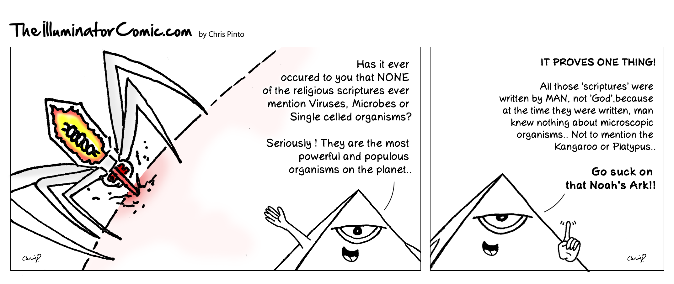 Illuminati, The Illuminator Comic, Triangle-head, Conspiracy theory, New World Order, NWO, Virus, Evolution, Atheism, God, Atheist,