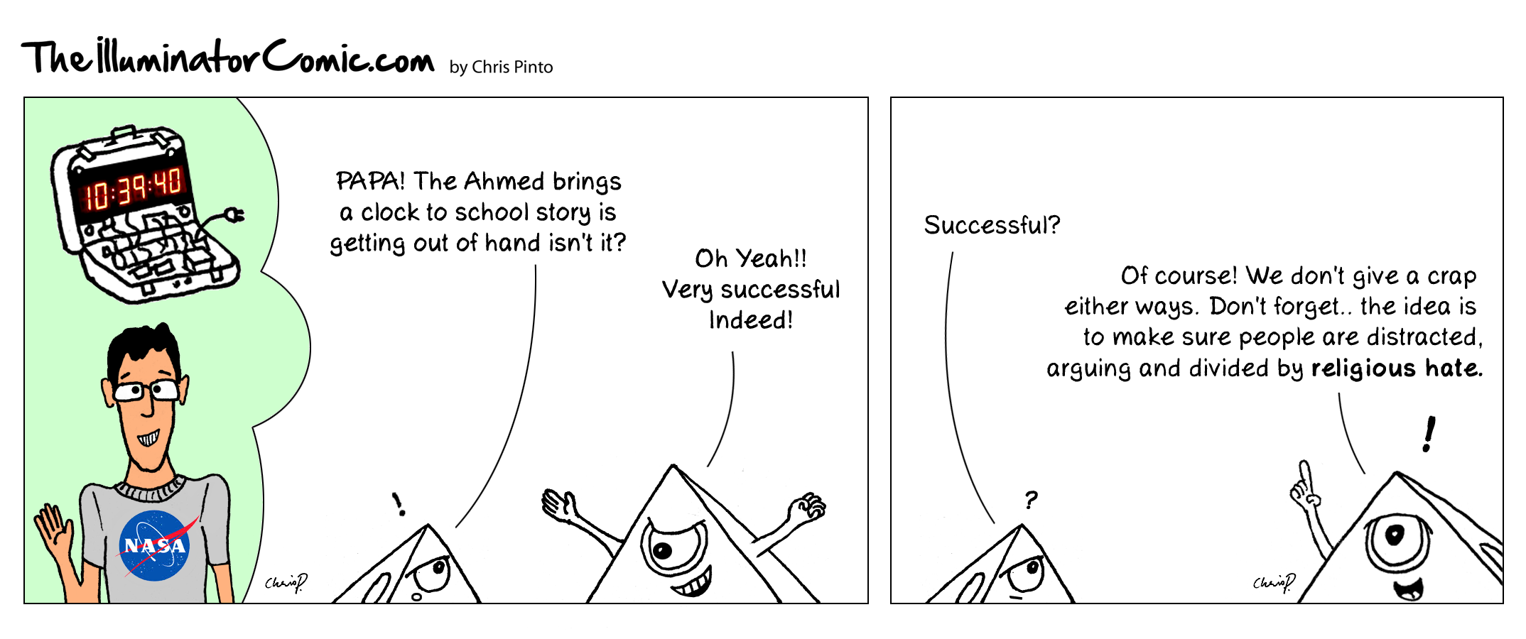 Illuminati, The Illuminator Comic, Triangle-head, Conspiracy theory, New World Order, NWO, Race, race baiting, Istandwithahmed, Baltar, Ajeet, Racist, Racism, , msm, media lies, fake news