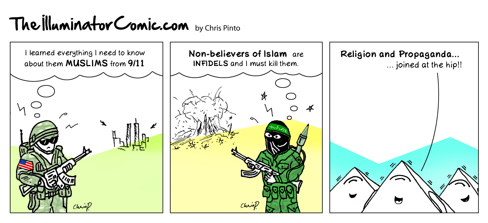 Illuminati, The Illuminator Comic, Triangle-head, Conspiracy theory, New World Order, NWO, Terror, Terrorist, Terrorism, ISIS, Islamophobia, Islam, Taliban, Al-Qaeda, AlQaeda, falseflag, false flag, msm, media lies, fake news