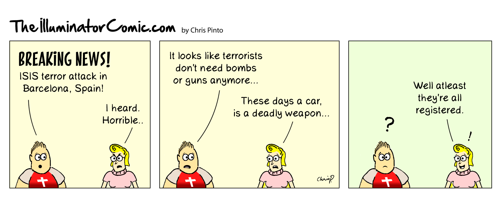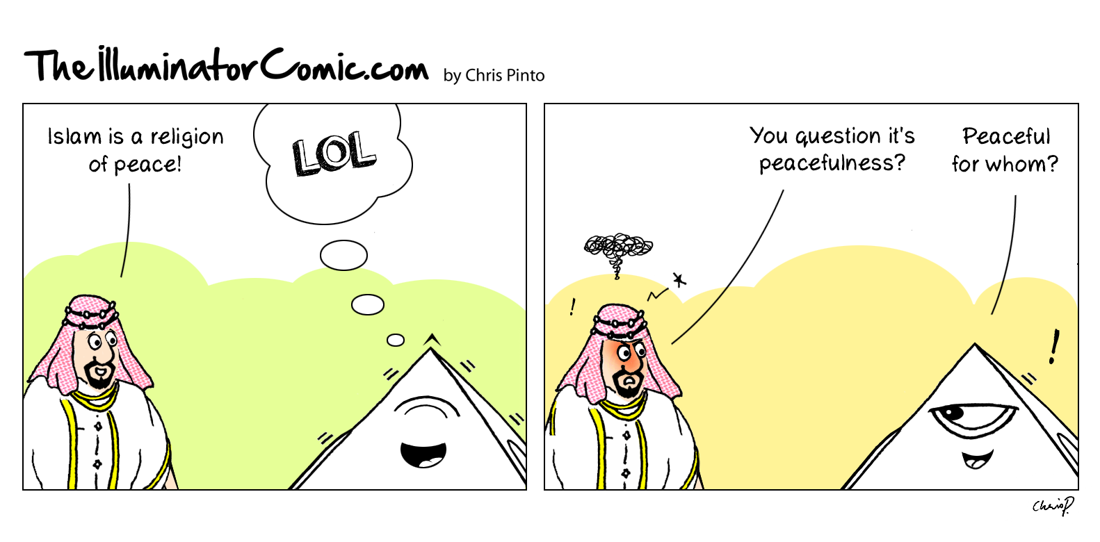 Illuminati, The Illuminator Comic, Triangle-head, Conspiracy theory, New World Order, NWO, Believer Bob, Liberal jane, Terror, Terrorist, Terrorism, ISIS, Islamophobia, Islam