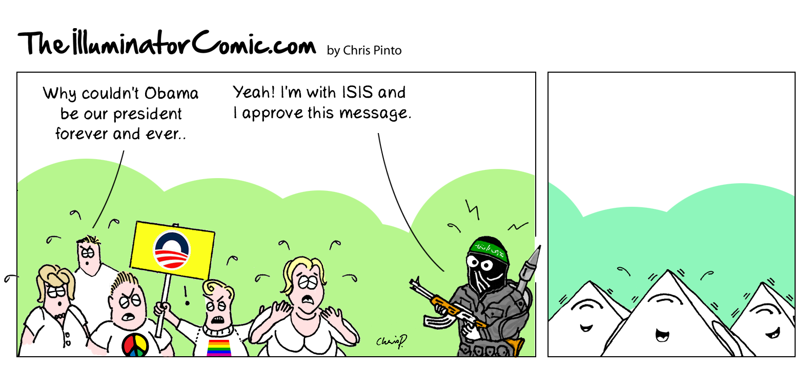 Illuminati, The Illuminator Comic, Triangle-head, Conspiracy theory, New World Order, NWO, ISIS, liberals, Barak Obama, President, Socialist, Communist