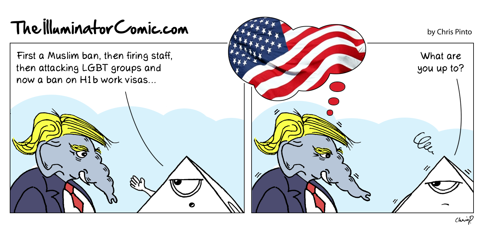 Illuminati, The Illuminator Comic, Triangle-head, Conspiracy theory, New World Order, NWO, President Trumpet, Trump, mexico, immigrants, immigration, deportation, build the wall, citizenship, citizens, illegal immigrants, undocumented
