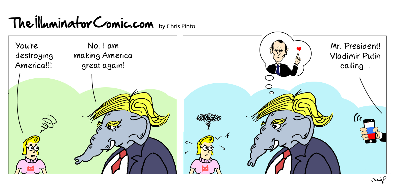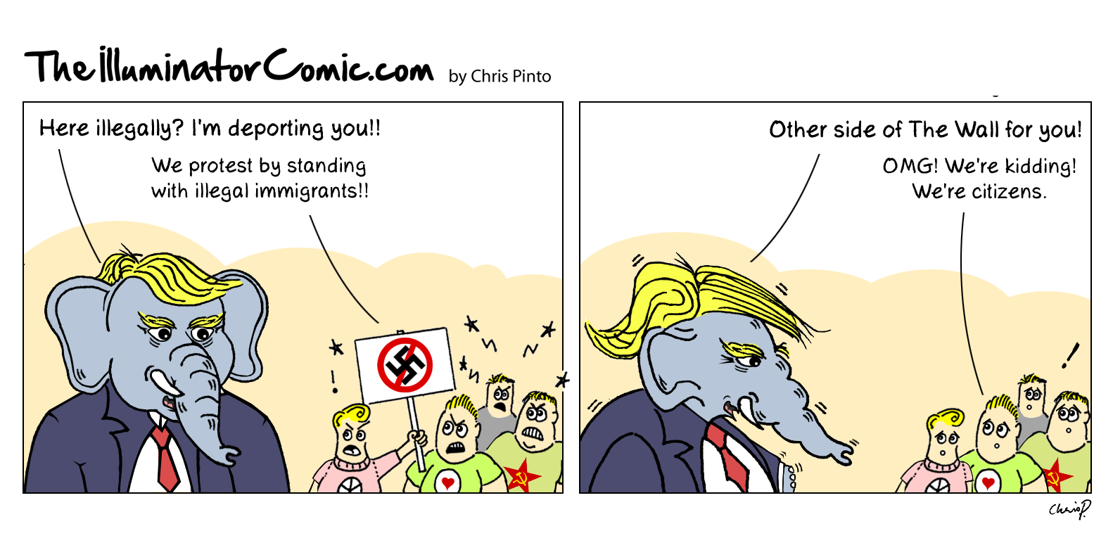 Illuminati, The Illuminator Comic, Triangle-head, Conspiracy theory, New World Order, NWO, President Trumpet, Trump, mexico, immigrants, immigration, deportation, build the wall, false flag, citizenship, citizens, illegal immigrants, undocumented, Liberal jane, Putin