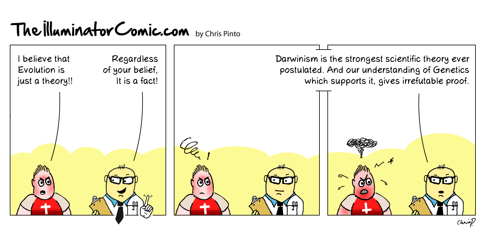 Illuminati, The Illuminator Comic, Triangle-head, Conspiracy theory, New World Order, NWO, Heaven, Hell, God, Devil, Christianity, Christians, Muslims, Islam, Hinduism, Hindus, Judiasm, Jews, Buddhist, Buddhism, Atheist, Atheism, Evolution, Genetics