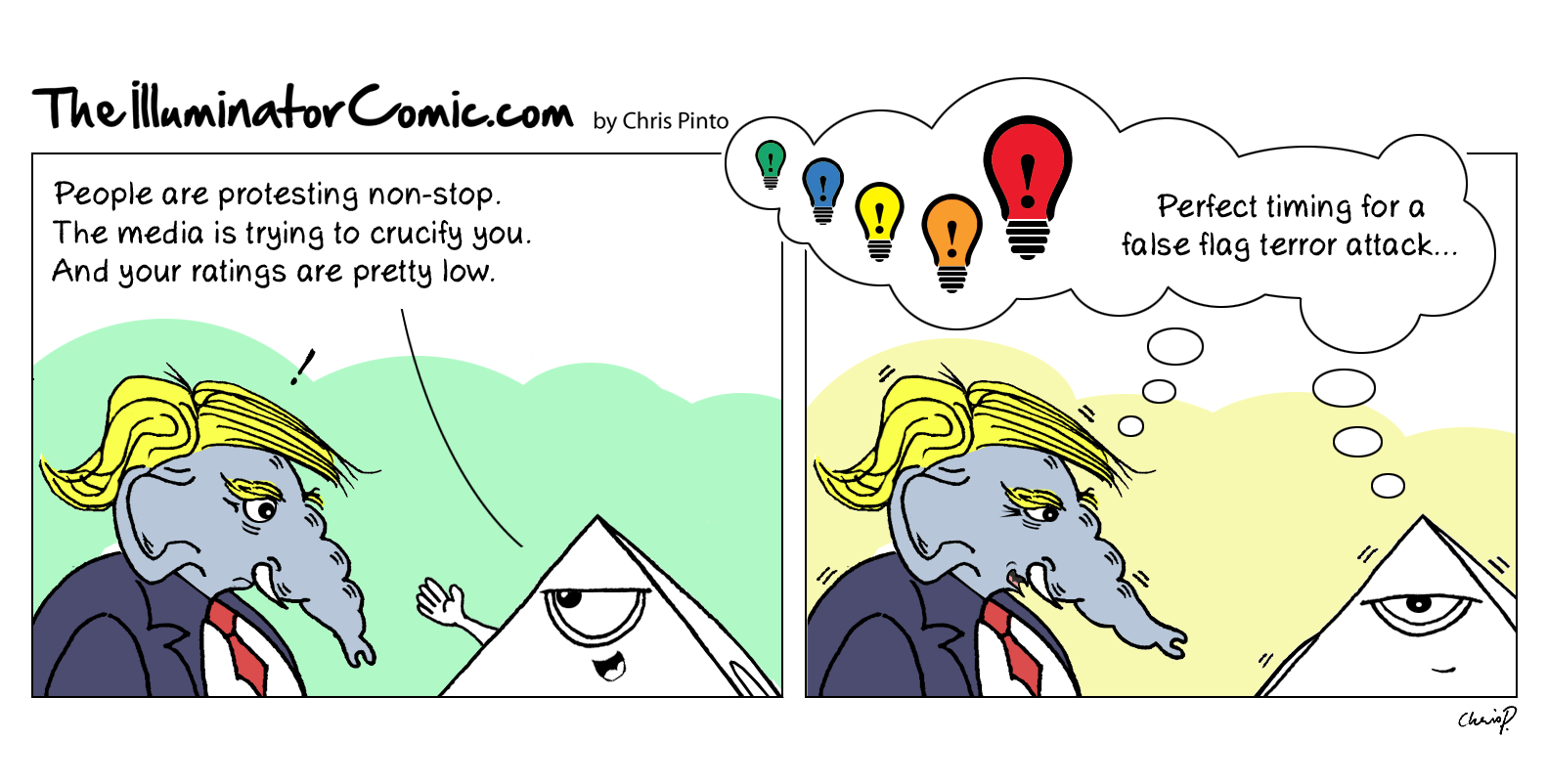 IIlluminati, The Illuminator Comic, Triangle-head, Conspiracy theory, New World Order, NWO, Terrorism, terrorist, cnn, msm, media lies, fake news, bomb
