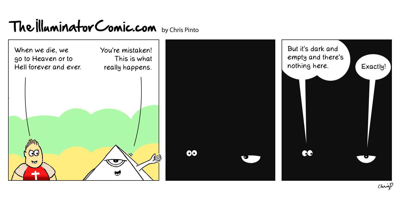 Illuminati, The Illuminator Comic, Triangle-head, Conspiracy theory, New World Order, NWO, Heaven, Hell, God, Devil, Christianity, Christians, Muslims, Islam, Hinduism, Hindus, Judiasm, Jews, Buddhist, Buddhism, Atheist, Atheism