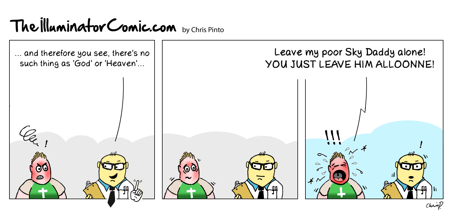 Illuminati, The Illuminator Comic, Triangle-head, Conspiracy theory, New World Order, NWO, Believer Bob, Heaven, Hell, Gays, Atheist, Liberals, Jews, Christians, Hindus, Mulsims, Islam,God