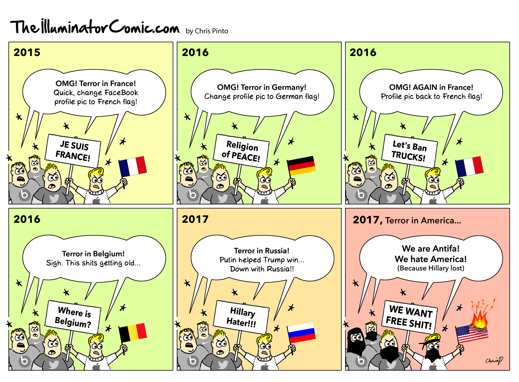 Illuminati, The Illuminator Comic, Triangle-head, Conspiracy theory, New World Order, NWO, Terrorism, terrorist, Antifa, Muslim, islam, cnn, msm, media lies, fake news, SJW