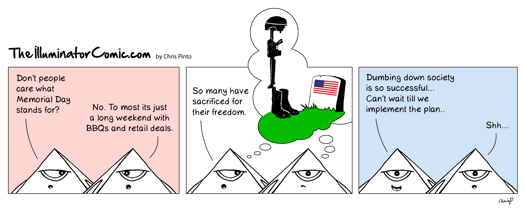 Illuminati, The Illuminator Comic, Triangle-head, Conspiracy theory, New World Order, NWO, Memorial day, Thank you, Military, service, US Army, freedom, sacrifice