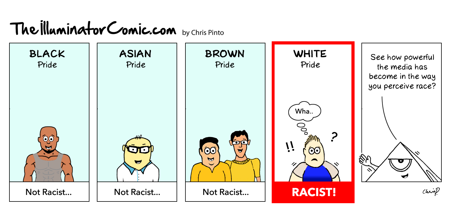 Illuminati, The Illuminator Comic, Triangle-head, Conspiracy theory, New World Order, NWO, Believer bob, Ajeet,Jose, Tyrone, Racist, Racism, Black, Bown, Asian, White, immigrant, Archiebald Gallo, Pride