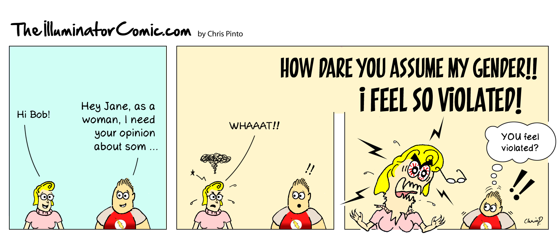 Illuminati, The Illuminator Comic, Triangle-head, Conspiracy theory, New World Order, NWO, Liberal jane, Believer bob, gender, transgender, tranny, gender dismorphia, triggered