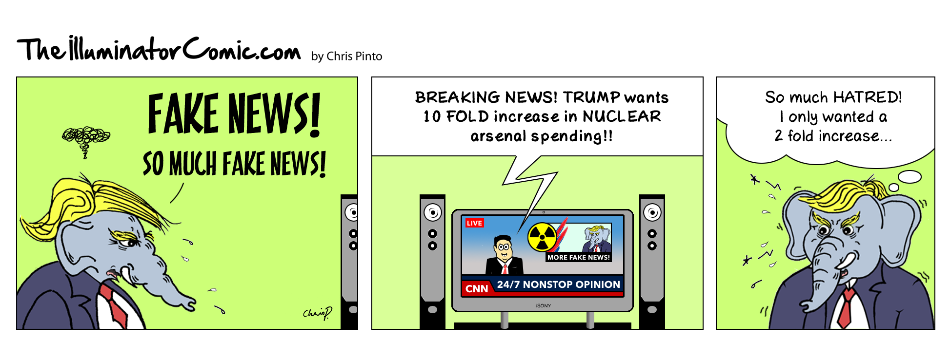 Illuminati, The Illuminator Comic, Triangle-head, Conspiracy theory, New World Order, NWO, MSM, fake news, FakeNews, President Trump, President Trumpet, Nuclear